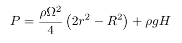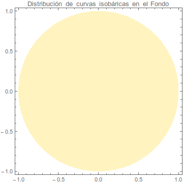 De lo anterior se encuentra que hay una curva isobárica que no se mueve y tiene un radio r=R/√2, esta circunferencia corresponde a los puntos donde se mantiene la superficie del líquido a la misma altura sin importar la velocidad, al mantener la altura mantiene la presión hidrostática que presentaba antes de la rotación.